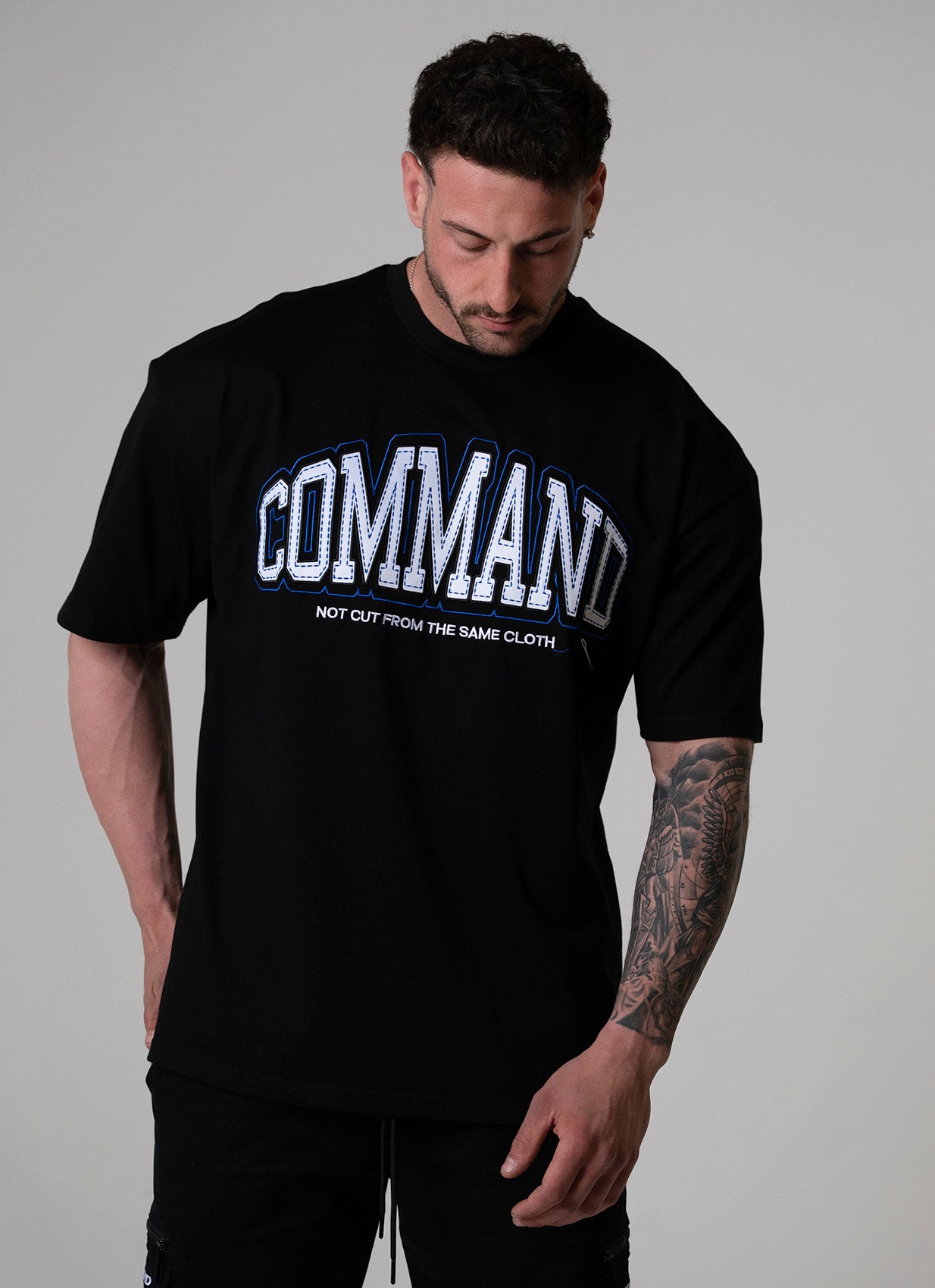 Built different. The Legacy T-Shirt is a statement piece for those who move on their own terms. Combines premium twill appliqué and embroidery touches, finished with our signature tagline "Not Cut From The Same Cloth."